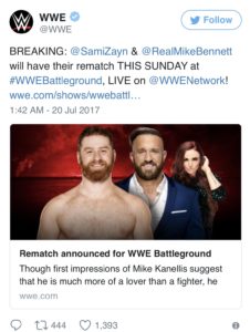 WWE „Battleground“ (23.07.2017): Aufeinandertreffen zwischen Zayn & Kanellis