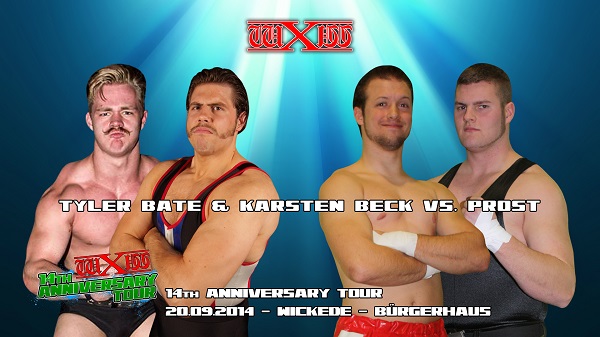 Am 20. September kommt wXw mit der 14th Anniversary Tour zurück nach Wickede und Beck bringt naturgemäß Verstärkung mit. Da Mr. Sha Samuels verhindert ist, hat Karsten Beck den blutjungen Bodybuilder Tyler Bate als Partner auserwählt. Der sei zwar erst 16, sehe aber trotzdem deutlich besser aus als die beiden Publikumslieblinge aus dem Ruhrgebiet. Geschmäcker sind bekanntlich verschieden, urteilt am Besten selbst…